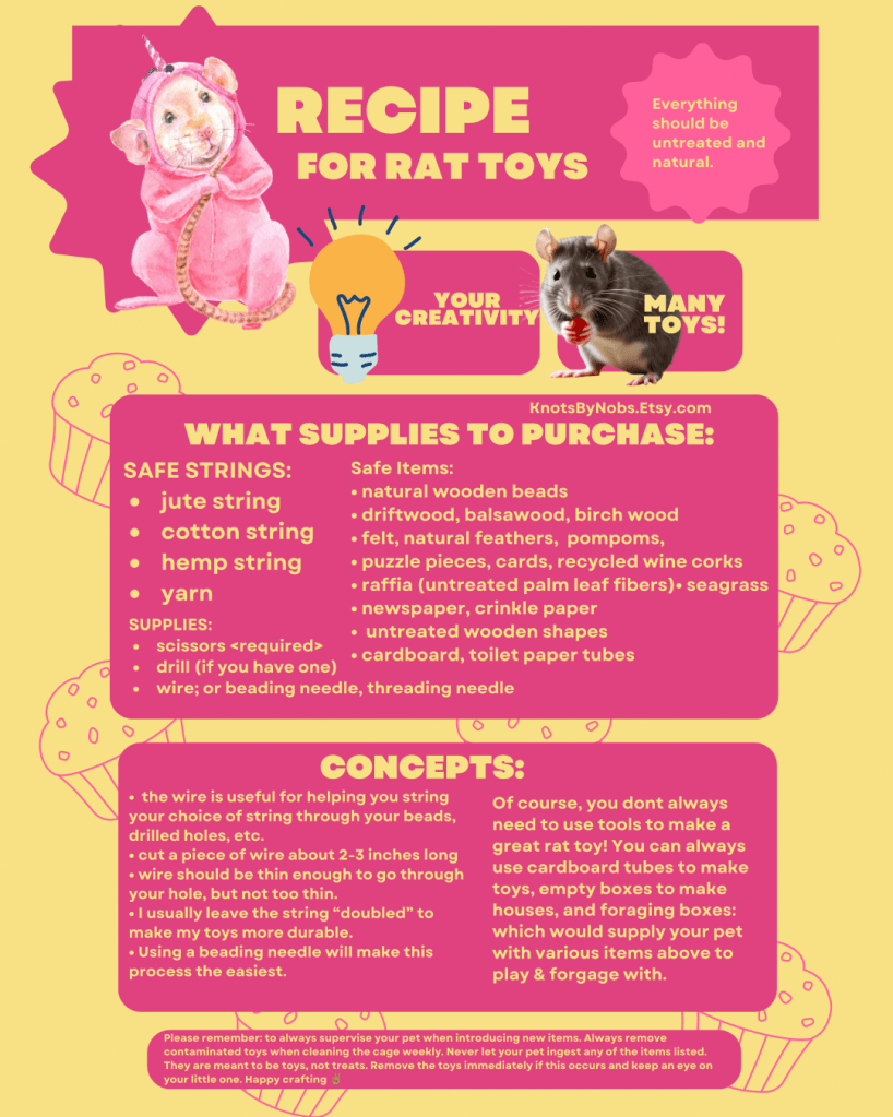 Making your own rat toys can be easy and fun! But also remember to use caution, especially when utilizing tools.