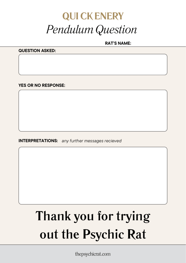 Every one of my services is geared towards your rat of choosing. At a very affordable rate $5-$15, I also offer one FREE pendulum question.