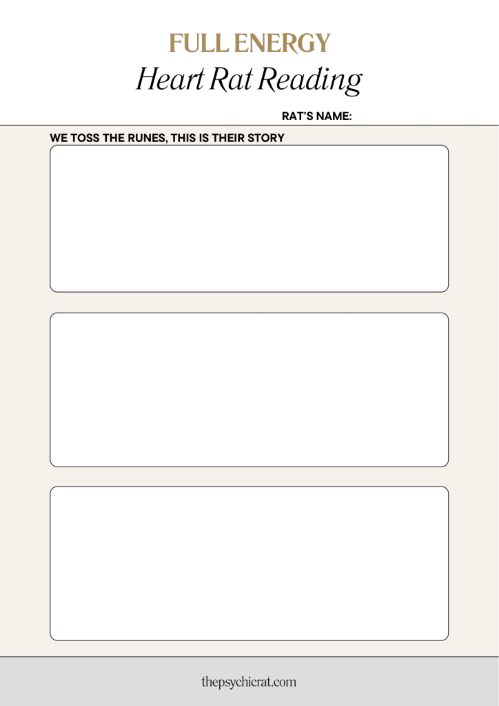 Full energy reading of your pet rat. I first draw three stones, for their past, present, and future. As well as a five-rune draw for insights into their psyche. If more rune telling is needed, I will do an additional toss to learn everything we can about them for you.
