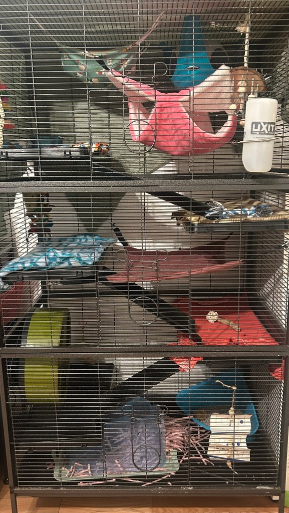 Each rat is handled daily. Each cage is spot cleaned and I will mingle with the cage mates. I check on them several times a day, as it is in the center of my house.