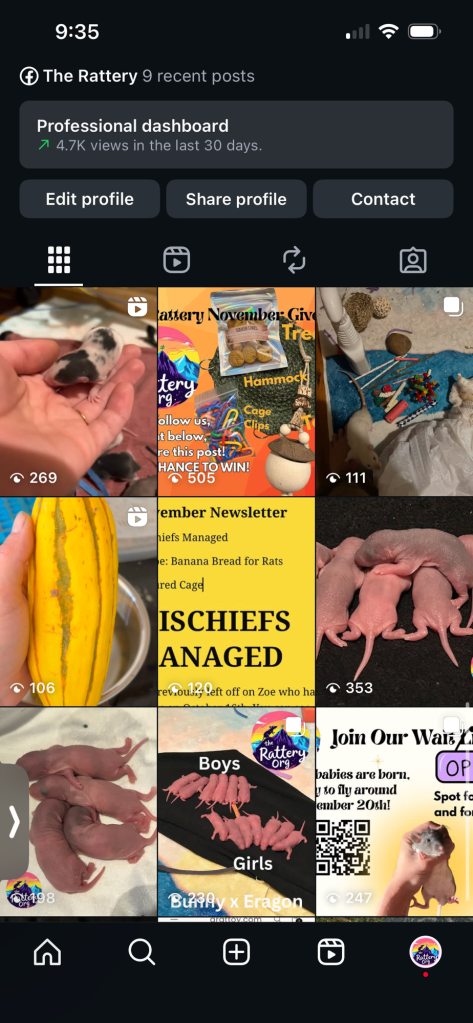 Of course, the next step would be to set up an instagram account. This is one of the best ways to build a positive community around your Rattery and connect with other Ratteries.