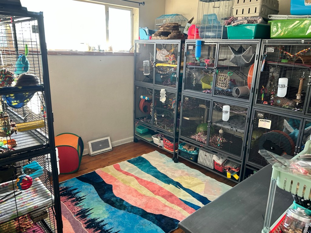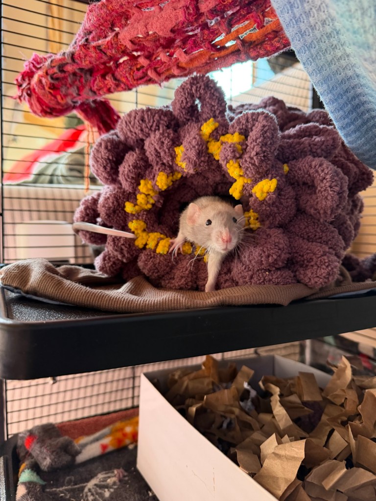 Every morning, she checks on her rat babies, providing breakfast, a treat, and morning kisses. There’s a midday check-in, and if possible, the rats enjoy some adventurous roaming. Evening time is set aside for at least an hour of free roaming.