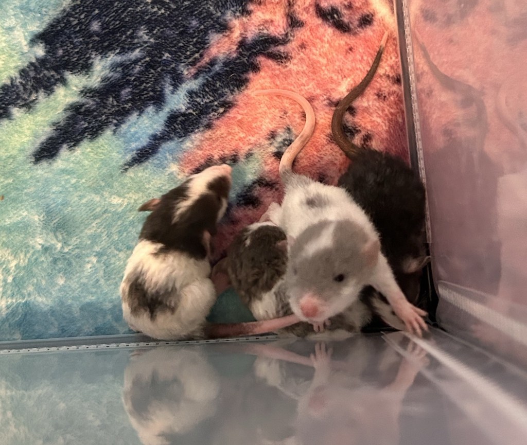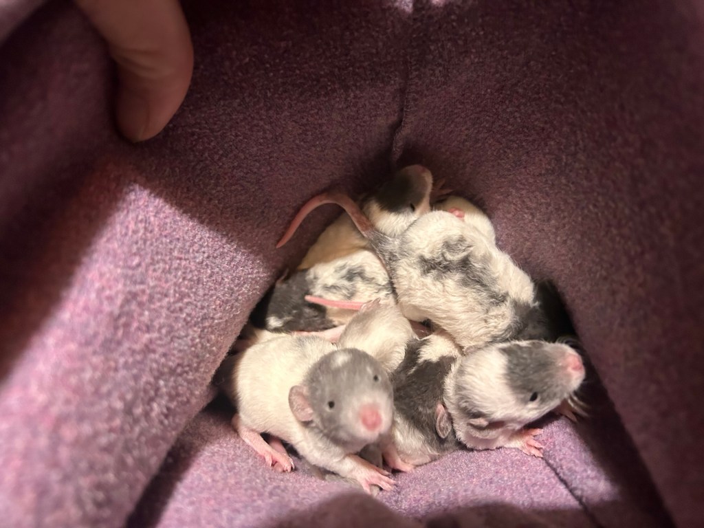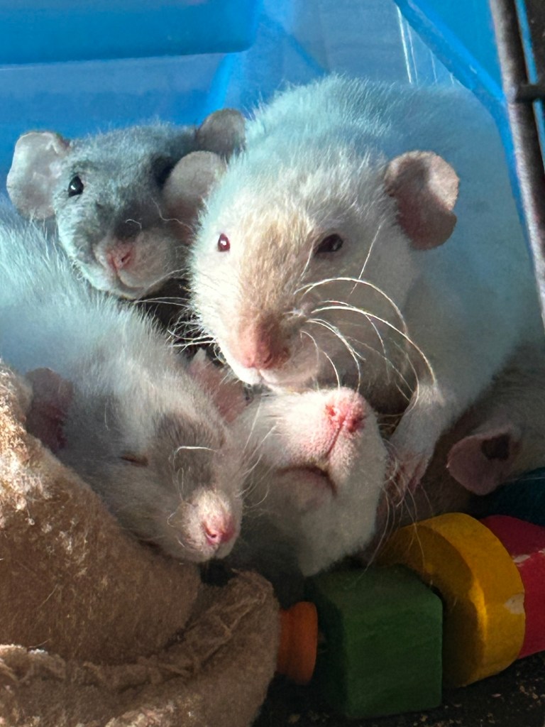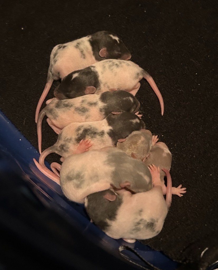 Zoe has been an incredible mother to her 13 babies; 8 boys and 5 girls. Typical for a rat I like to say is 6-16.