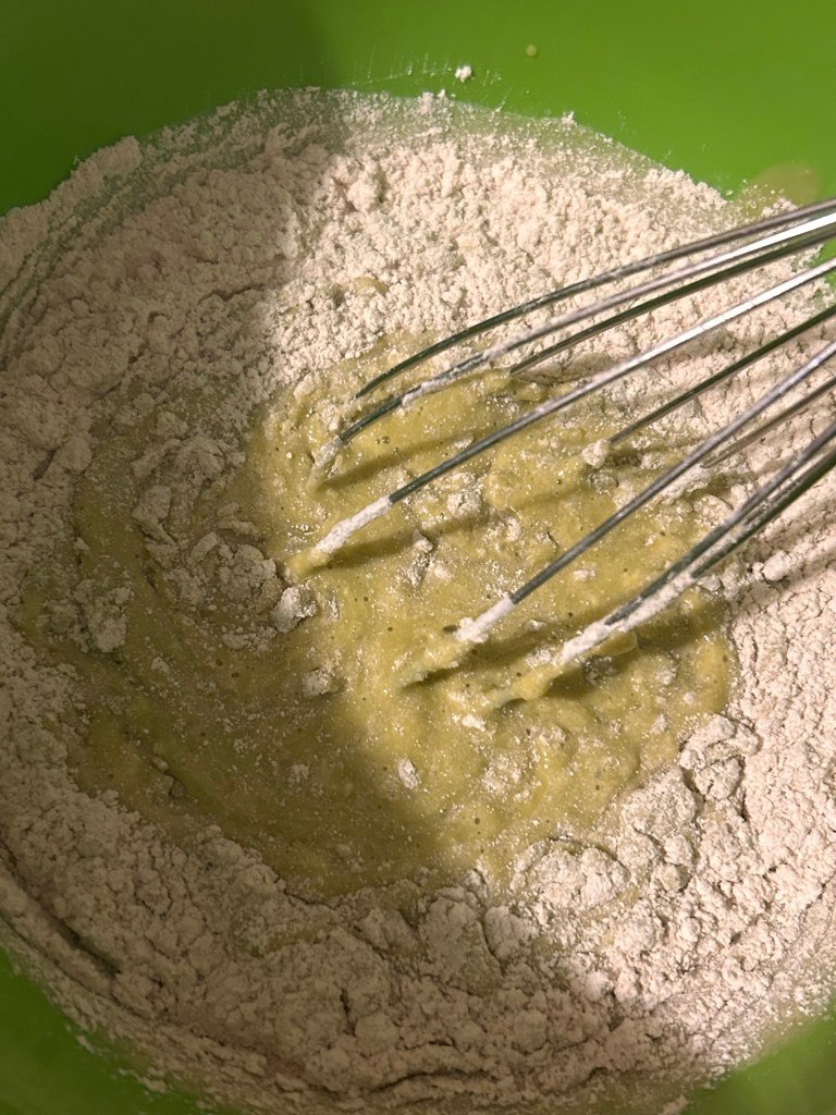 Step 4: pour mixture into bowl. Add the quinoa flour and remaining 2 TBS of water. Whisk well. (Adjust water and flour as needed.)