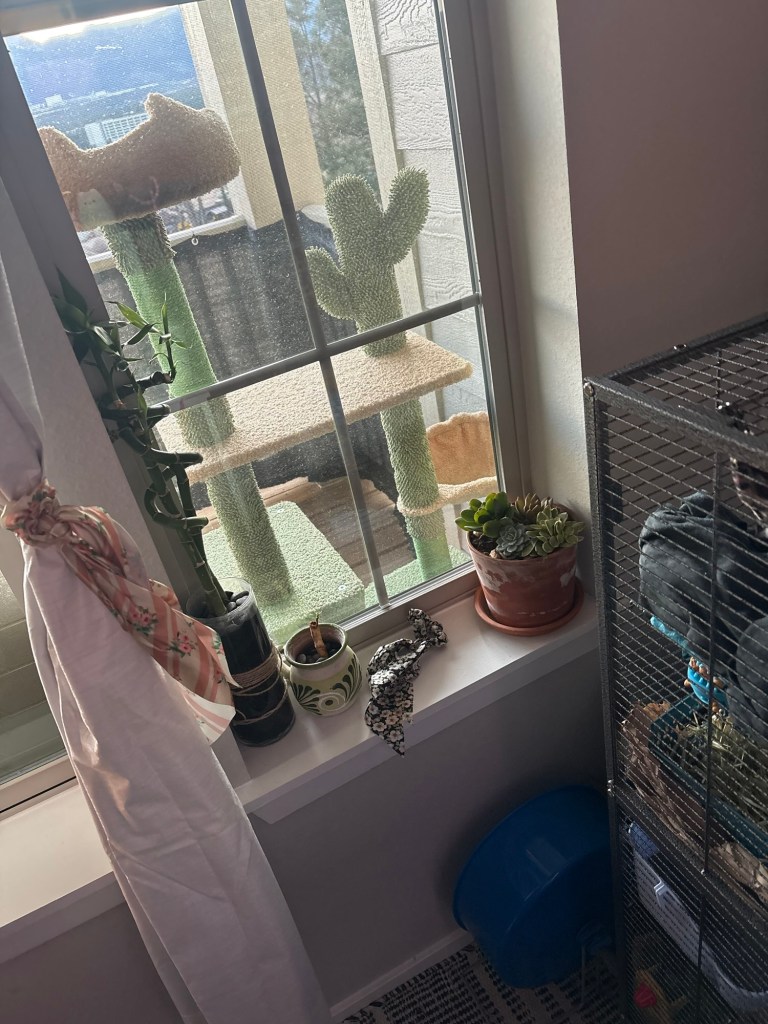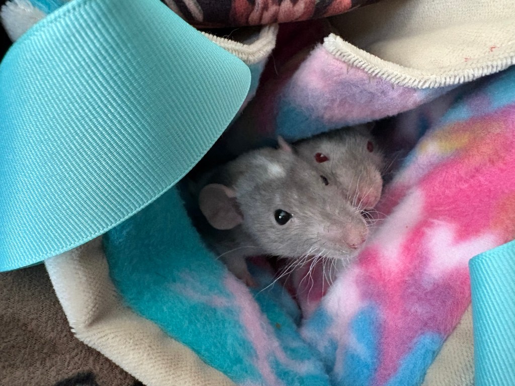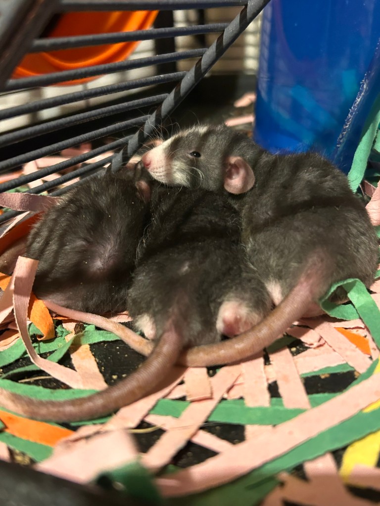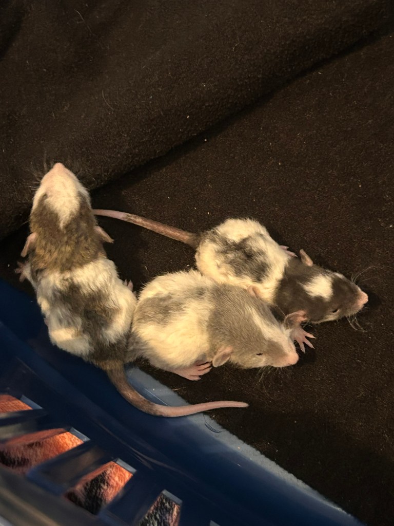 They’re both really healthy and eating/sleeping/drinking well, and it just blows me away how socialized they already are. I decorated their cage with slightly “easier” climbing routes and watching to make sure Boggle can navigate them, but other than that I have absolutely zero concerns about their health and temperament.