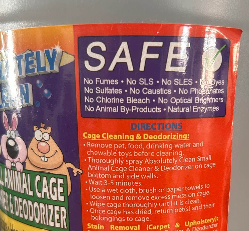 There are a few small animal cleaners on the market, like Nature’s Miracle. But personally, my favorite so far has been Absolutely Clean.