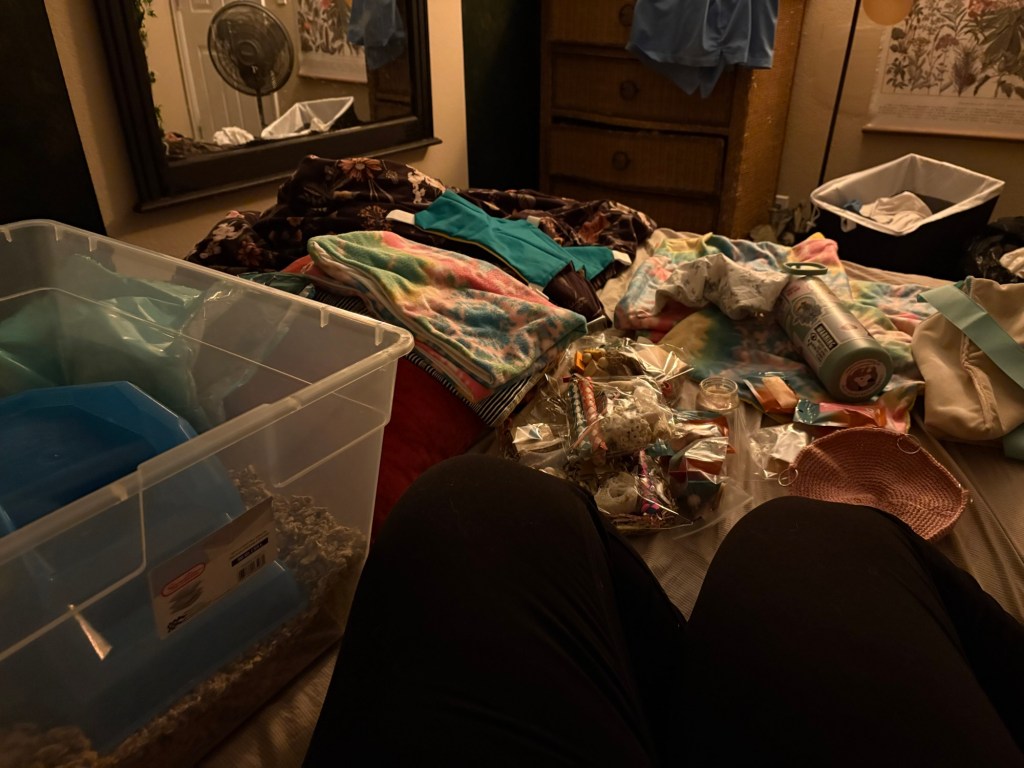 “The package is PHENOMENAL!!! The colors for all the hammocks are so lovely and absolutely perfect– I actually tried to find pink and blue fabric at Michael’s but they were out 🥲 Now I just have the travel carrier next to me while I go through all the (AMAZING) toys and the [rune] readings 💕💕 The boys are popping out to groom my nails and then diving back into the hide 😭